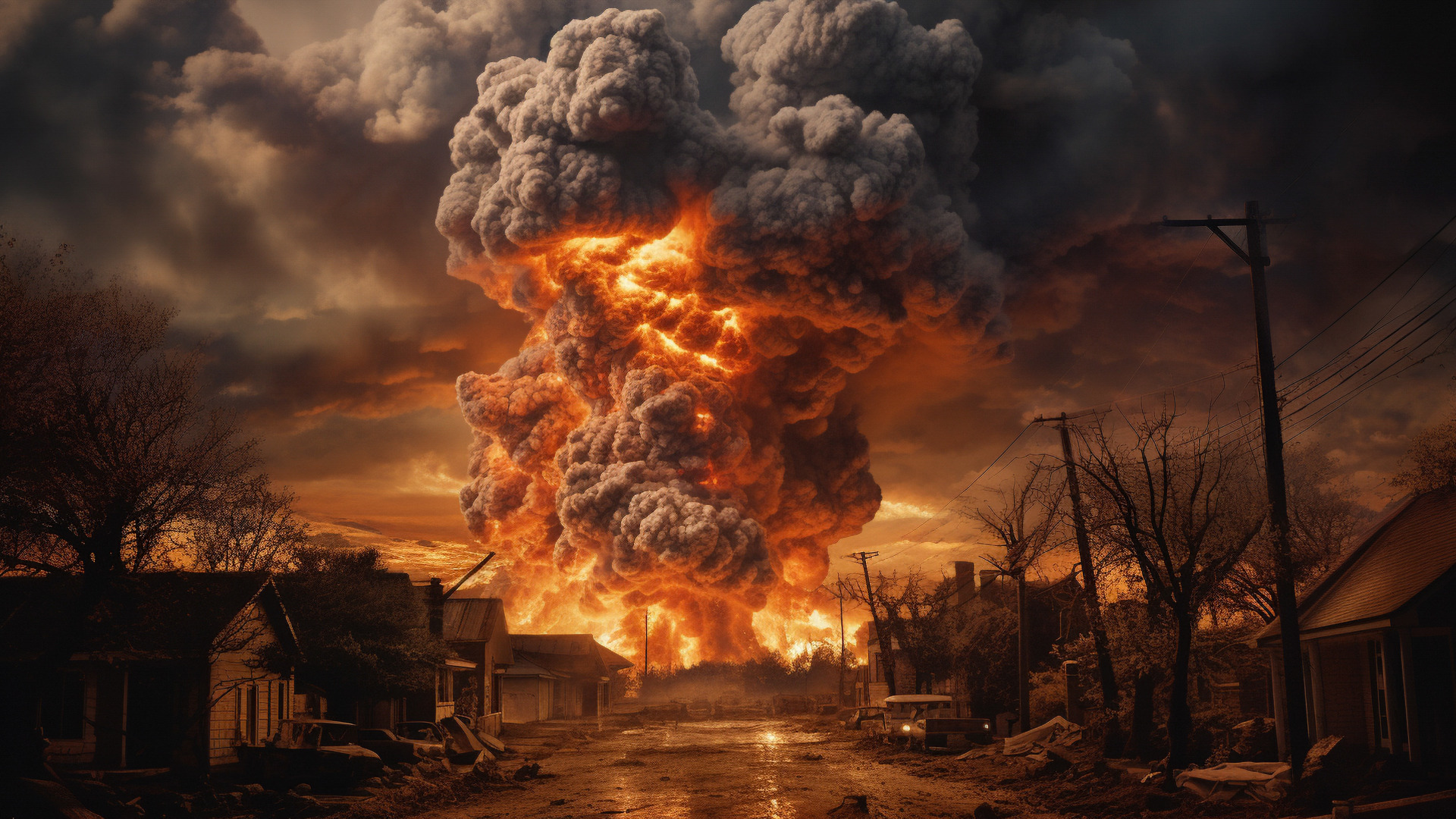 Дым от взрыва над заброшенной улицей с разрушенными домами и голыми деревьями на фоне темного неба с оранжевым заревом 00 В закладки Скачать Хорошие качество Маленкое качество 16-09-25 24 Теги: 1920x1080, full hd, hd, деревья, дома, дым, небо, нейросеть, облака, огонь, широкоформатные Комментарии (0) Написать Прокомментировать Введите код с картинки: Отправить Похожее видео: 16-09-25 Девушка в черном костюме держит светящийся меч, позирует на фоне поля с деревьями и утреннего солнца 16-09-25 Каменный фонарь стоит у темного водоема, отражающего зеленые кроны деревьев, на фоне пышной растительности и высоких деревьев 16-09-25 Желто-черный спорткар Lamborghini Fenomeno (FENOMENO) на блестящей поверхности, на фоне ярко-желтой стены и темного пространства 16-09-25 Акварельный рисунок уютного дома на берегу озера, окруженного деревьями, горами и цветущими растениями 16-09-25 Модель Victoria в светлой кофточке и в джинсах стоит с приподнятыми руками на дороге на фоне водоема и пасмурного неба 16-09-25 Песчаные дюны с сухой травой, за ними бушующий океан с двумя скалами и массивными слоистыми утесами, на фоне грозового неба с молнией и лучами солнца 16-09-25 Мужчина и женщина сидят, обнявшись, на крыше, рядом горящие свечи, на фоне вечерней панорамы города с огнями и закатного неба 16-09-25 Мужчина Гоку / Goku из аниме Драгонболл / Dragon Ball в оранжевом костюме стоит на скале, глядя вдаль, на фоне гор, тумана, восходящего солнца и неба