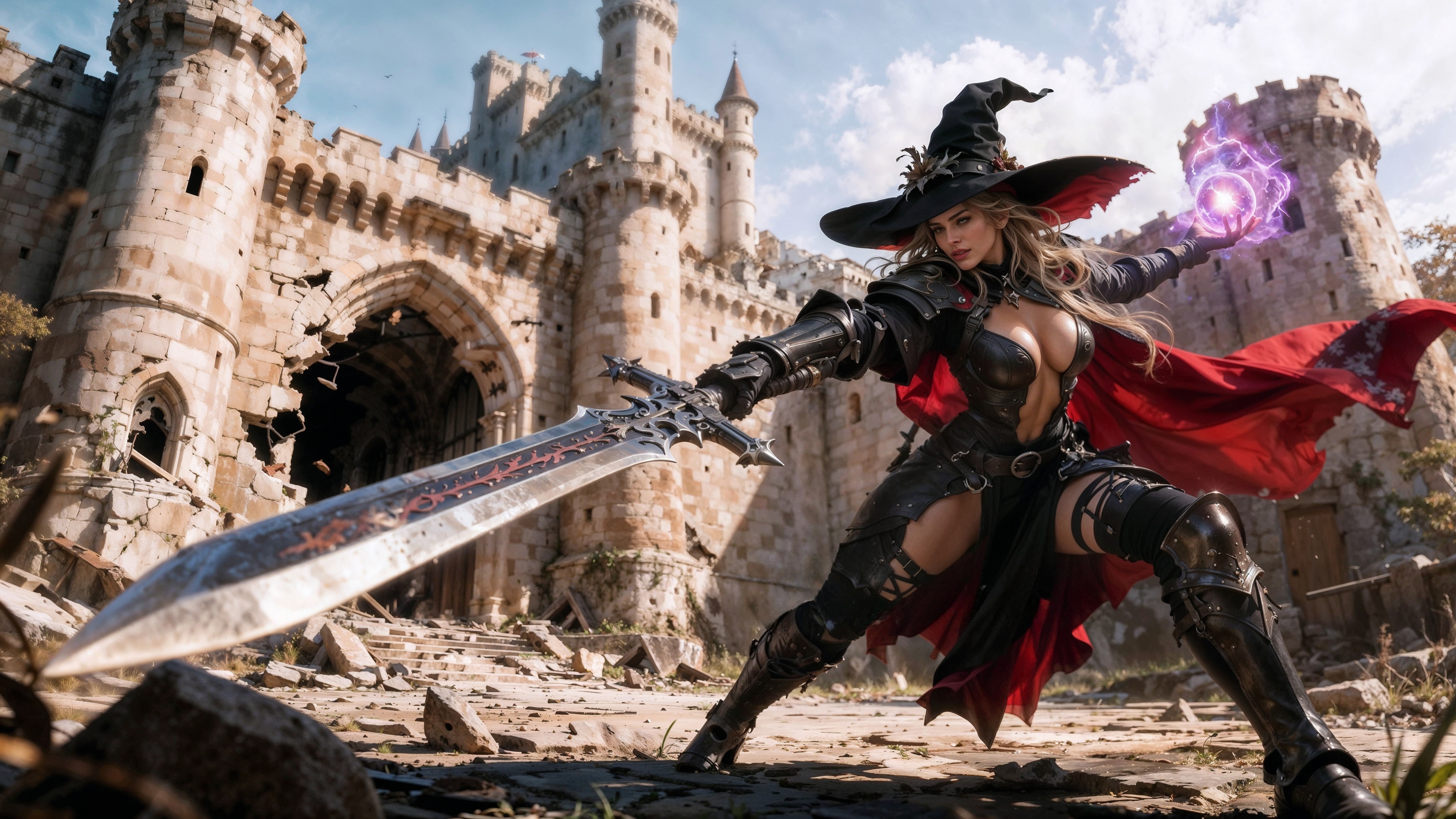 Боевая волшебница стоит на фоне разрушенной крепости, держа в одной руке меч, в другой - заклинанье 00 В закладки Скачать Хорошие качество Маленкое качество 3-10-25 16 Теги: 3840x2160, 4к, full hd, hd, дома, магия, небо, нейросеть, облака, оружие, рисунки, фэнтези, широкоформатные Комментарии (0) Написать Прокомментировать Введите код с картинки: Отправить Похожее видео: 24-09-25 Рыцарь в полном латном костюме с красными элементами стоит, держа длинный меч в правой руке, на темном фоне 24-09-25 Рыцарь в полном стальном доспехе стоит, держа в руках меч, на темном фоне 24-09-25 Рыцарь в полном металлическом костюме с синим сюрко, держа меч и щит, на темном фоне 3-10-25 Могучая волшебница в красном одеянии с вычурным посохом создала волшебный череп и магическую лозу, стоя на крою скалы на фоне замка и окрестностей гор 16-09-25 Модель Ксюша Черная в красном платье в горошек с открытыми плечами стоит на городской улице и держит в руке пакет с хлебом 24-09-25 Модель Настя в шляпе и в красном платье стоит с букетом ромашек в руке в поле 24-09-25 Шатенка в кепочке, в распахнутой кофте, в топе и в шортиках стоит у ограждения и держит в руке перед коровой букет ромашек 16-09-25 Девушка в черном костюме держит светящийся меч, позирует на фоне поля с деревьями и утреннего солнца