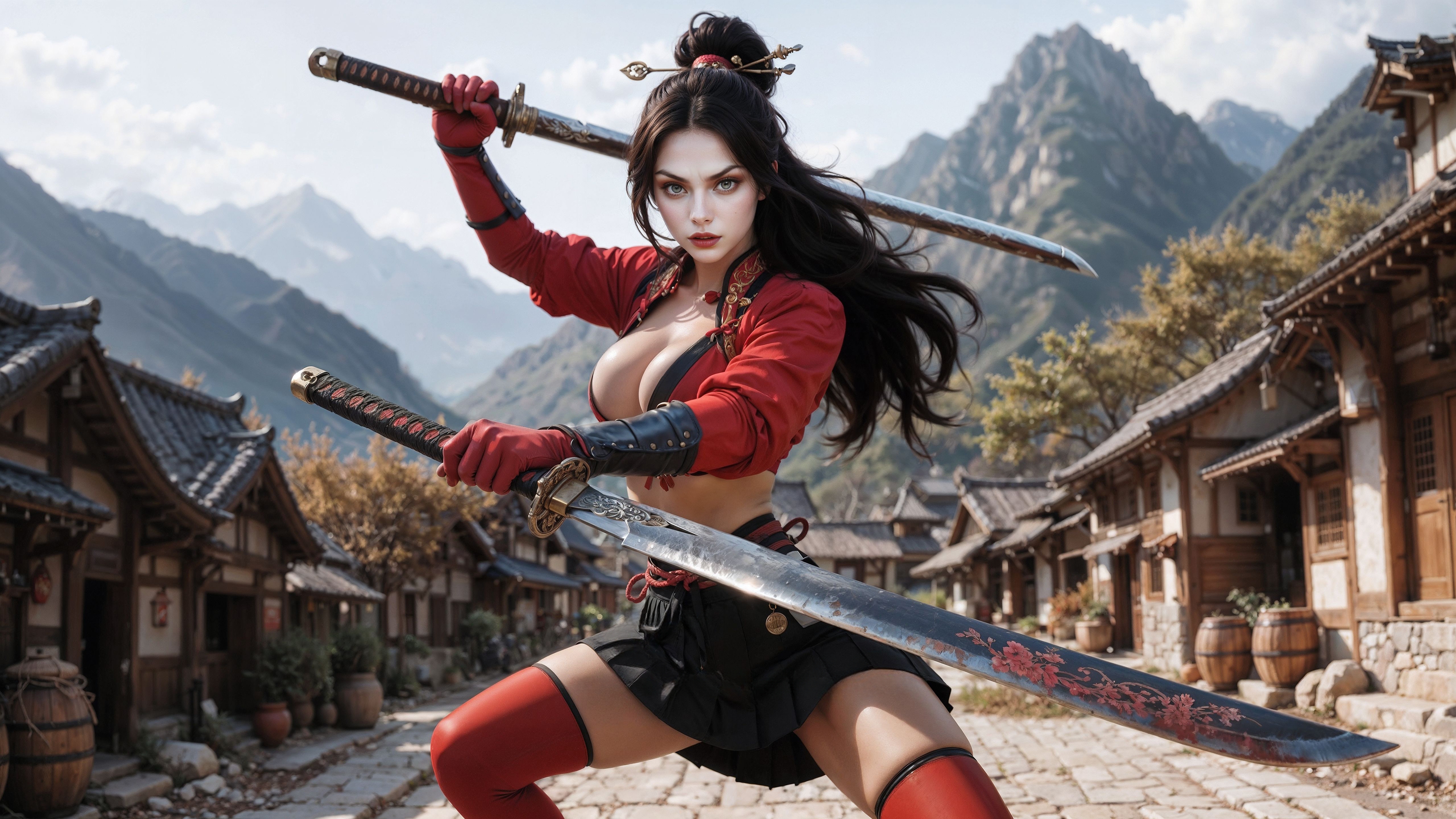 Девушка стоит в стойке посреди улицы восточного поселения, держа два меча 00 В закладки Скачать Хорошие качество Маленкое качество 18-10-25 40 Теги: 3840x2160, 4к, full hd, hd, горы, девушки, деревья, дома, люди, нейросеть, оружие, природа, рисунки, улица, широкоформатные Комментарии (0) Написать Прокомментировать Введите код с картинки: Отправить Похожее видео: 3-10-25 Эльфийка-воительница стоит у лавки с прислоненным к стойке мечом в средневековом городе 6-10-25 Девушка с черными крыльями стоит посреди площади и держит огненный меч в руке на фоне каменного здания 16-09-25 Темный мертвый священник в одеяниях держит в руке со стекающей с пальцев крови священный сосуд посреди древнего храма 18-10-25 Деревья с покрасневшей листвой на острове посреди горного озера 3-10-25 Девушка в белом спортивном костюме и красном козырьке сидит на теннисном корте, поправляя носок, рядом с ней две ракетки и два теннисных мяча 16-09-25 Два павлина сидят на корнях деревьев, которые покрыты розовыми цветами 17-09-25 Два шезлонга стоят на белом песке под белым зонтом на фоне синего моря и пальм в солнечный летний день 3-10-25 Wesley Snipes из фильма Блэйд / Blade в темных очках и кожаном костюме скрестил руки, держащие два изогнутых клинка