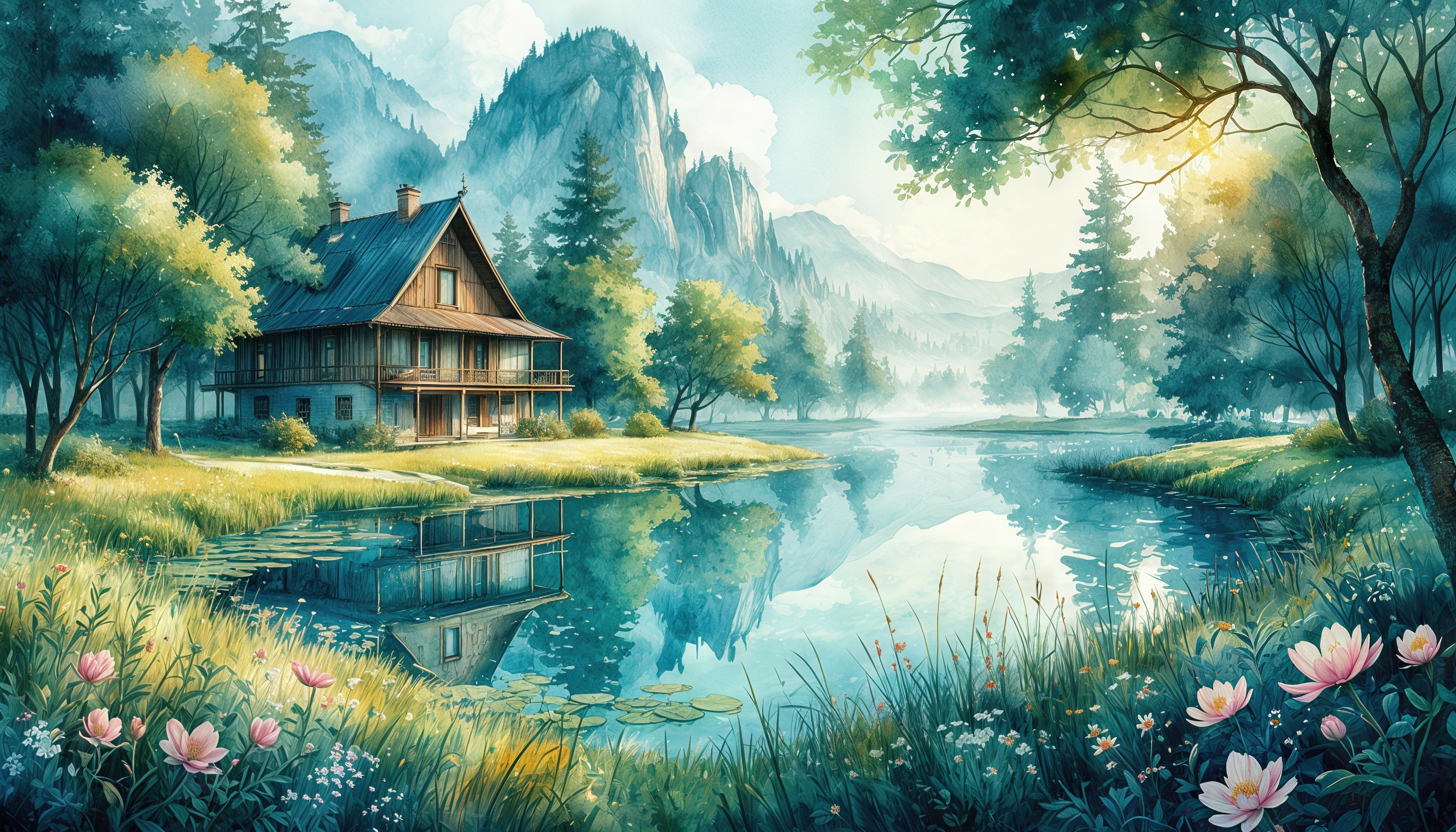 Акварельный рисунок уютного дома на берегу озера, окруженного деревьями, горами и цветущими растениями 00 В закладки Скачать Хорошие качество Маленкое качество 16-09-25 38 Теги: 3072x2048, full hd, hd, вода, горы, деревья, дома, небо, нейросеть, облака, природа, рисунки, цветы, широкоформатные Комментарии (0) Написать Прокомментировать Введите код с картинки: Отправить Похожее видео: 16-09-25 Дом на краю обрыва с водопадом, окруженный горами и туманной долиной на рассвете или закате. В небе летят птицы 16-09-25 Темноволосая девушка в цветастом платье сидит на кресле в комнате с растениями 16-09-25 Девушка в черном костюме держит светящийся меч, позирует на фоне поля с деревьями и утреннего солнца 16-09-25 Дым от взрыва над заброшенной улицей с разрушенными домами и голыми деревьями на фоне темного неба с оранжевым заревом 15-09-25 Модель Вероника в розовом бикини лежит на каменистом берегу моря 16-09-25 Темноволосая девушка в черном бикини лежит на песке на берегу моря